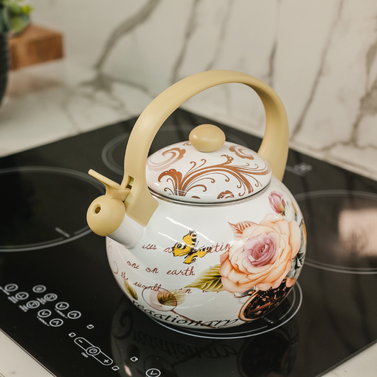 Chaleira Esmaltada Vintage 2,2L com Apito à Indução Flowers