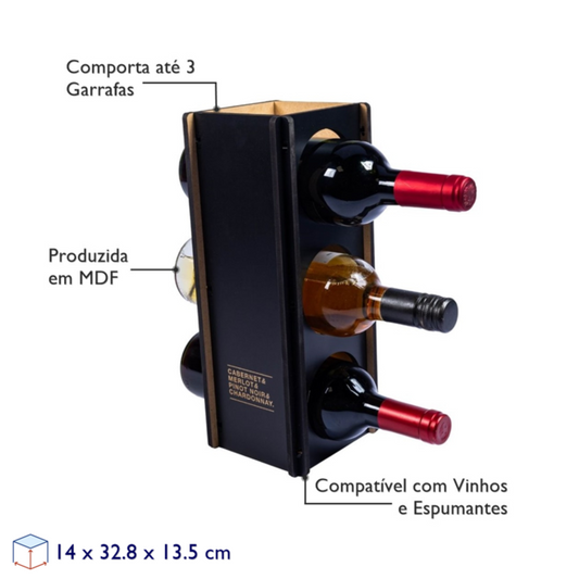 Adega em MDF para 3 Garrafas Preta Vinhos Espumantes