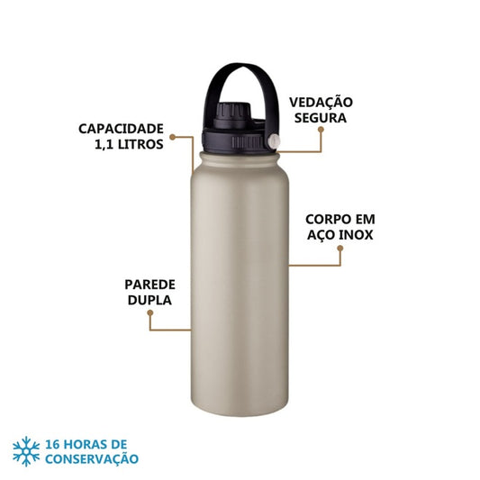 Garrafa Parede Dupla com Alça 1,1L em Aço Inox Bege