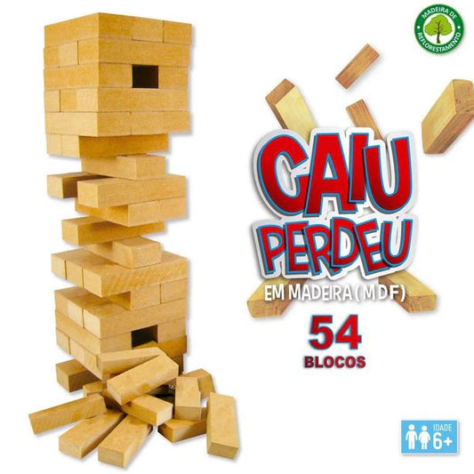 Jogo Caiu Perdeu Pais e Filhos - Equilibre os Blocos de Madeira