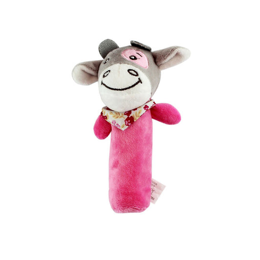 Pelúcia Chocalho Vaquinha Rosa com Apito e Som Crocante
