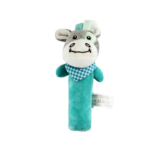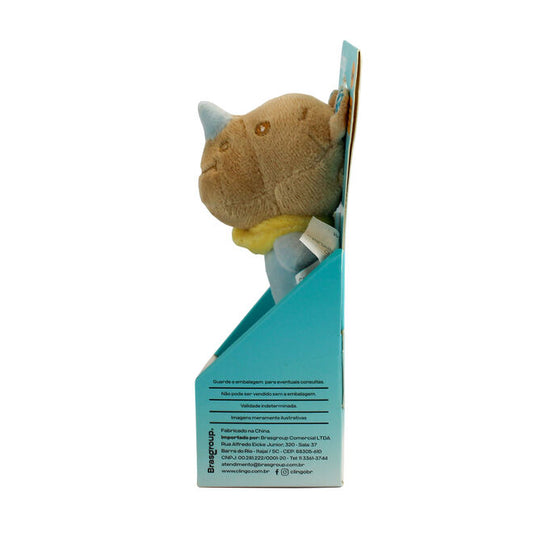 Pelúcia Chocalho Oval Rinoceronte Azul com Apito e Som Crocante