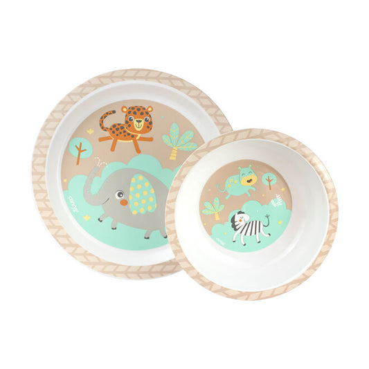 Kit Prato e Tigela Infantil Resistente com Estampa Safari - Clingo