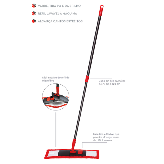 Mop Flat em Microfibra Ajustável Rodo para Limpezas Gerais 1,20m
