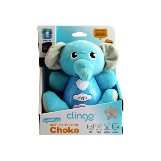 Pelúcia Elefante Musical Azul com Sons e Toque Macio