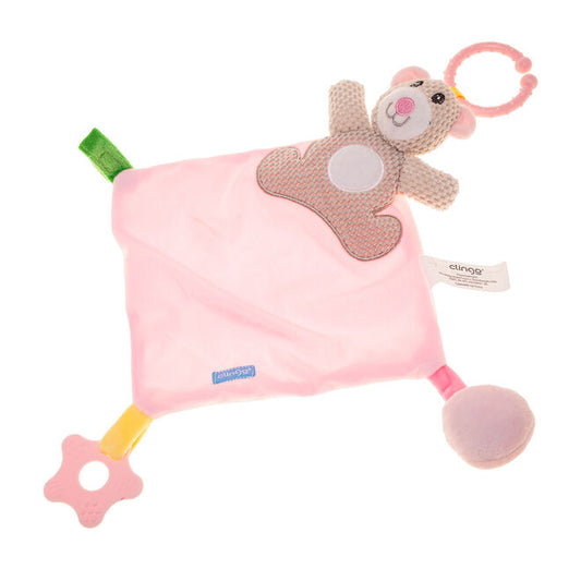 Naninha Urso Rosa com Mordedor e Suporte para Chupeta