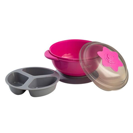 Prato com Ventosa e Divisória Clingo - Rosa
